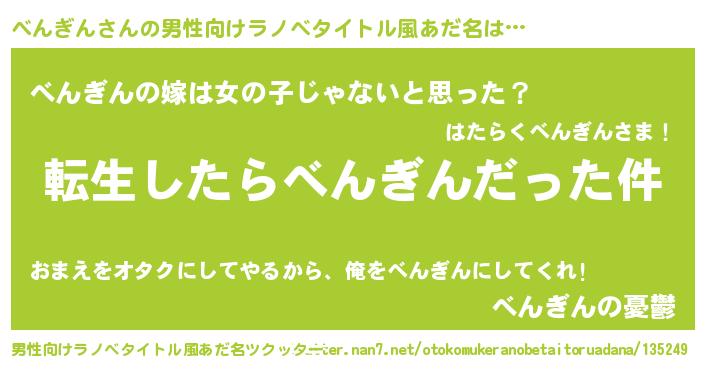 | ヘコむあだ名 | 『べんお』『べんにゅー』『豆乳』 |