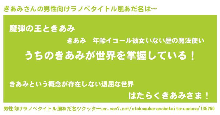 | 胡散臭い通販商品みたいなあだ名 | 『あなたにだけ特別に提供する100年もののヴィンテージワイン…その名も「きあみ」』 |