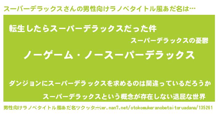 スーパーデラックスさんの男性向けラノベタイトル風あだ名をツクッター!