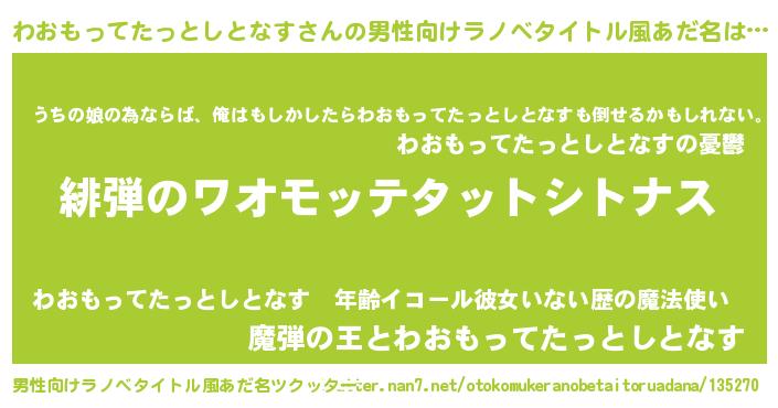 | ヒーロー風カッコイイあだ名 | 『ウルトラわおもってたっとしとなすマン』 |