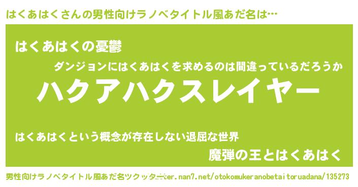 | 胡散臭い通販商品みたいなあだ名 | 『必ず成功する霊験あらたかなお札…その名も「はくあはく」』 |