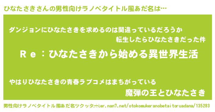 | 意味不明あだ名 | 『自称ひなたさき』 |