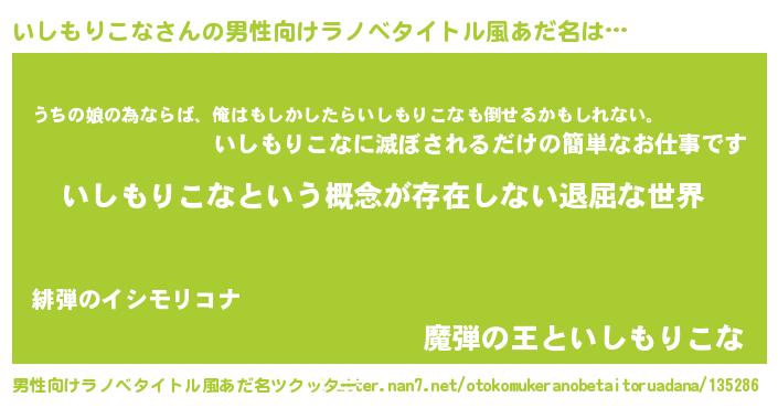 | 女子向けラノベタイトル風あだ名 | 『異世界で失敗しない100のいしもりこな』 |