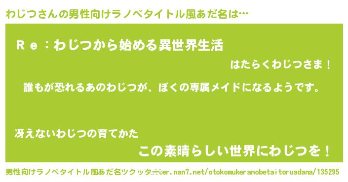 | 女子向けラノベタイトル風あだ名 | 『異世界でカフェわじつを開店しました。』 |