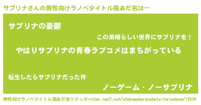 | 女子向けラノベタイトル風あだ名 | 『サブリナ伯爵の花嫁』『サブリナ恋絵巻』 |