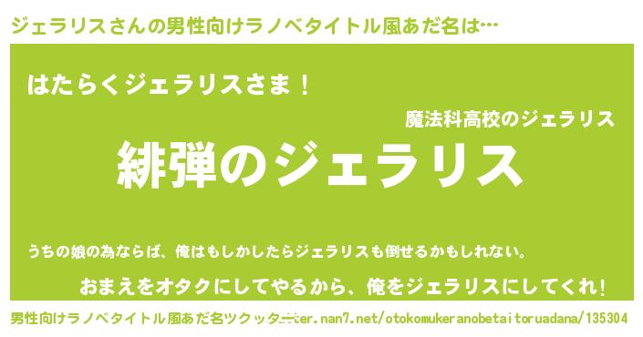 | ヒーロー風カッコイイあだ名 | 『正義の使者ジェラリス』『銀牙騎士ジェ』 |