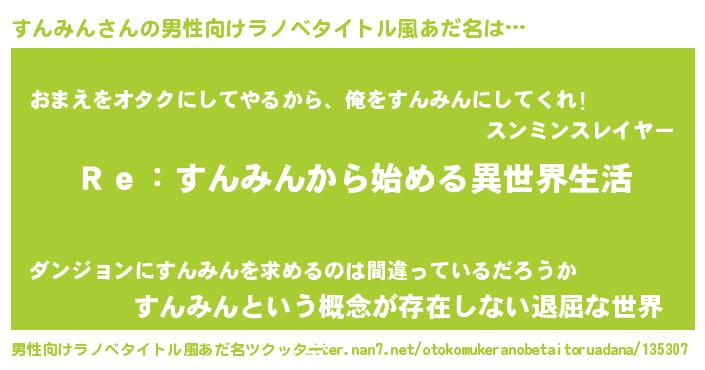 | 女子向けラノベタイトル風あだ名 | 『すんみんストレイドッグス』 |