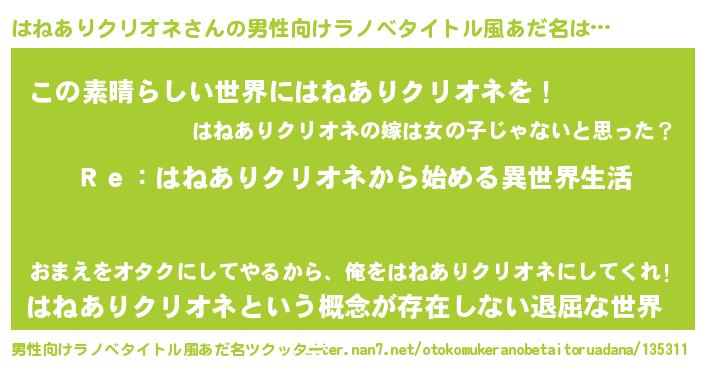 | 意味不明あだ名 | 『自称はねありクリオネ』 |