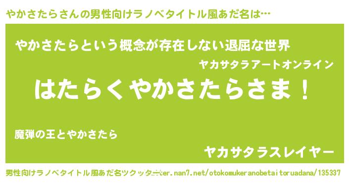 | ヒーロー風カッコイイあだ名 | 『ネオヤカサタラ』『スーパーヤカサタラ』 |