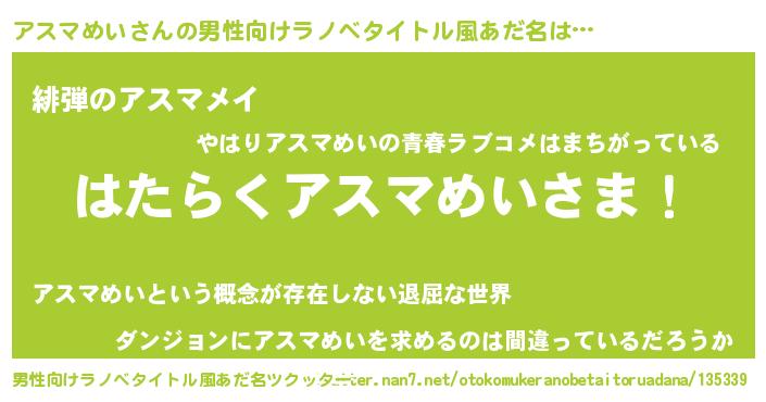 | 伝説のあだ名 | 『孤高の遊び人アスマめい』 |