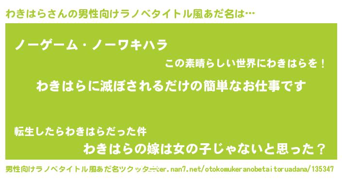| ヒーロー風カッコイイあだ名 | 『愛の使者わきはら』『幻影騎士ワキ』 |