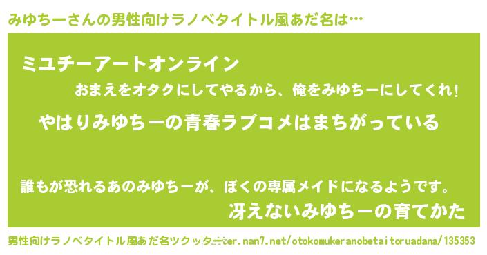 | 女子向けラノベタイトル風あだ名 | 『みゆちーの雑貨屋さん』 |