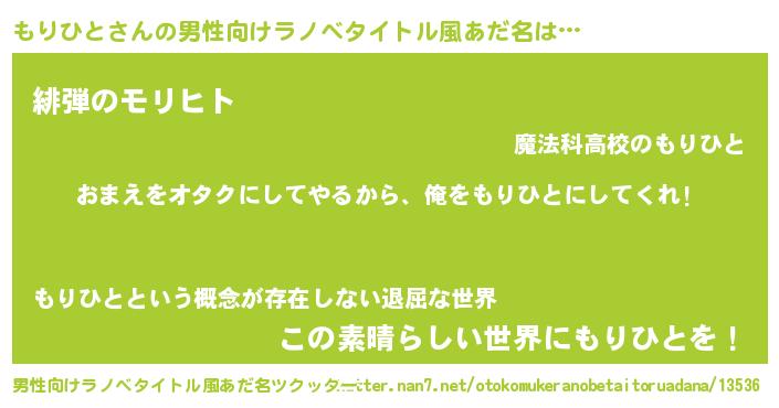 | ヘコむあだ名 | 『もりひと(笑)』『なまこ酢』 |