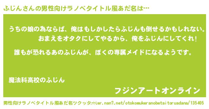 | 女子向けラノベタイトル風あだ名 | 『異世界でカフェふじんを開店しました。』 |