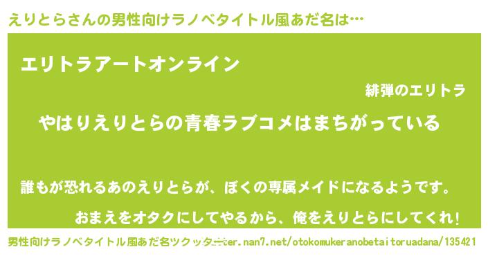 | 女子向けラノベタイトル風あだ名 | 『えりとらの雑貨屋さん』 |