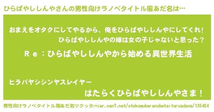 | ヘコむあだ名 | 『ひらっちょ』『ひらばやししんや(笑)』 |