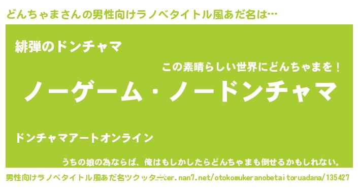 | 女子向けラノベタイトル風あだ名 | 『死神どんちゃまの再婚』 |