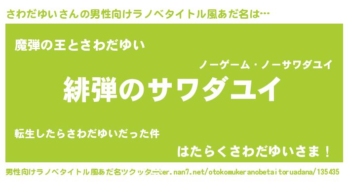 | 意味不明あだ名 | 『住所不定無職さわだゆい(89歳)』 |