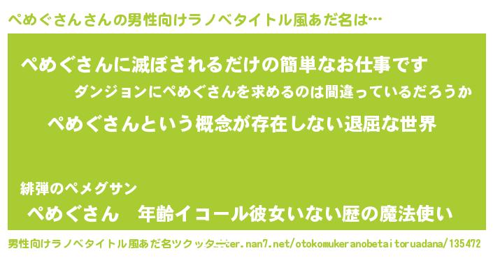 | 女子向けラノベタイトル風あだ名 | 『ペめぐさんの契約王妃』 |