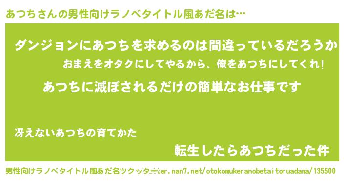 | ヘコむあだ名 | 『あつっちょ』『あつち(笑)』 |