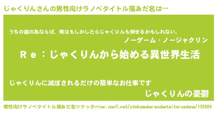 | 女子向けラノベタイトル風あだ名 | 『闇のじゃくりん』『じゃくりんの婚約者』 |