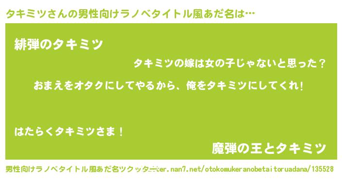 | 女子向けラノベタイトル風あだ名 | 『タキミツ恋絵巻』『タキミツ様がみてる』 |
