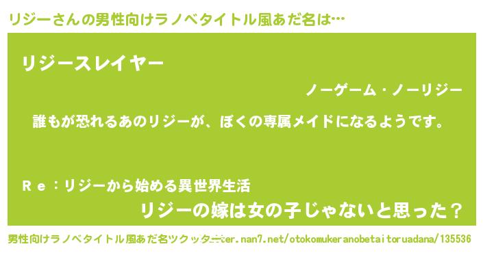 | ヘコむあだ名 | 『リジー(小並感)』『リジっちょ』 |