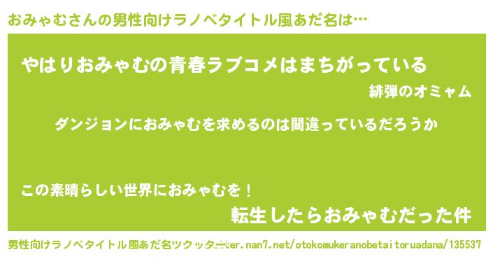 おみゃむさんの男性向けラノベタイトル風あだ名をツクッター!