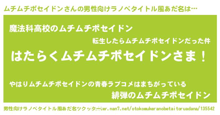 | 胡散臭い通販商品みたいなあだ名 | 『テレビで話題の高麗人参…その名も「ムチムチポセイドン」』 |