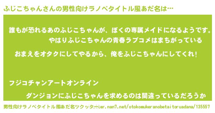 | ヘコむあだ名 | 『ふじこちゃん(震え声)』『ふじお』 |