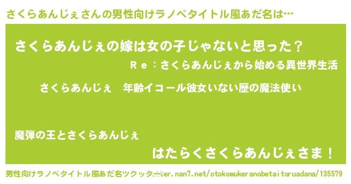 さくらあんじぇさんの男性向けラノベタイトル風あだ名をツクッター!