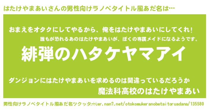 | ヒーロー風カッコイイあだ名 | 『正義の使者はたけやまあい』 |