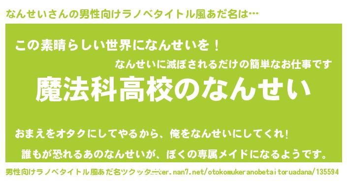 | 女子向けラノベタイトル風あだ名 | 『なんせいなんてお断りですっ。』 |