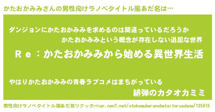 | 女子向けラノベタイトル風あだ名 | 『闇のかたおかみみ』 |