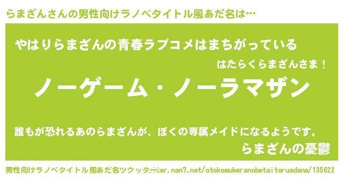 | ヒーロー風カッコイイあだ名 | 『慈愛の使者らまざん』『ネオラマザン』 |