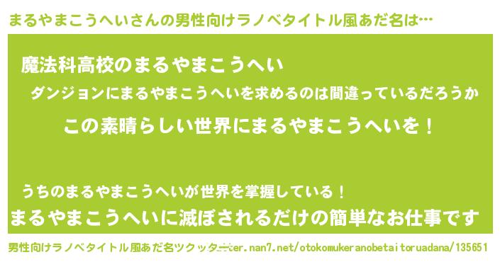 | 女子向けラノベタイトル風あだ名 | 『乙女ゲームの破滅フラグしかない悪役まるやまこうへいに転生してしまった…』 |