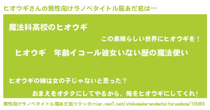 | ヒーロー風カッコイイあだ名 | 『究極戦士ヒオウギ』『愛の使者ヒオウギ』 |