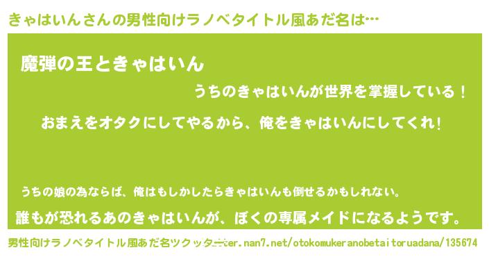 | 胡散臭い通販商品みたいなあだ名 | 『100人中100人が認めたマグネット磁石…その名も「きゃはいん」』 |