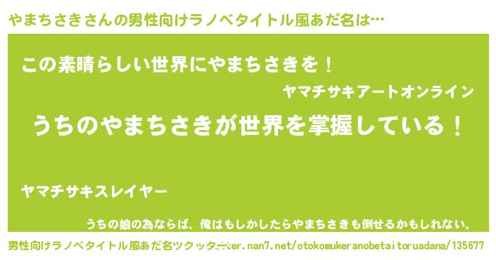 | 女子向けラノベタイトル風あだ名 | 『男装やまちさきの憂鬱な任務』 |
