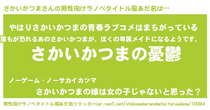 さかいかつまさんの男性向けラノベタイトル風あだ名をツクッター!