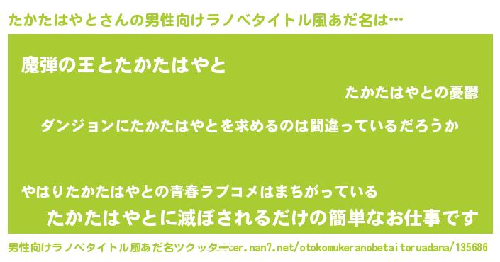 たかたはやとさんの男性向けラノベタイトル風あだ名をツクッター!