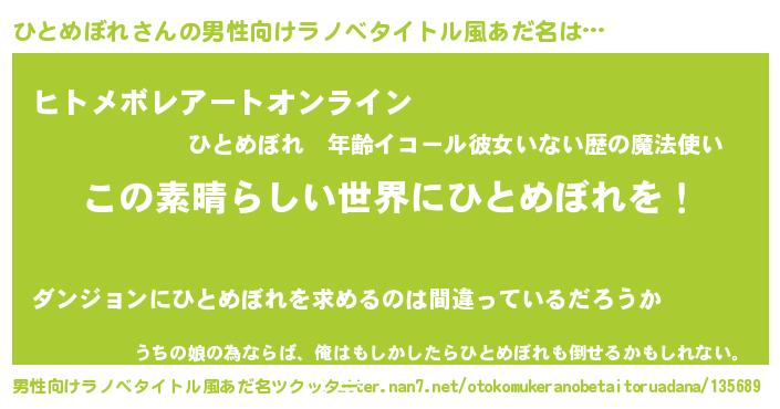 | 胡散臭い通販商品みたいなあだ名 | 『あなたにだけ特別に提供する100年もののヴィンテージワイン…その名も「ひとめぼれ」』 |