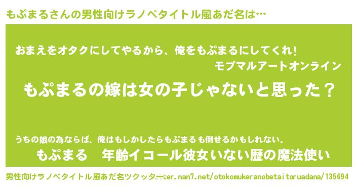 | 女子向けラノベタイトル風あだ名 | 『もぷまる様がみてる』 |