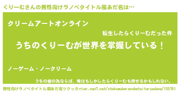 | 女子向けラノベタイトル風あだ名 | 『男装くりーむの憂鬱な任務』 |