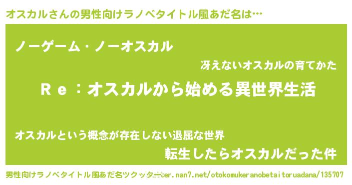 | ヘコむあだ名 | 『オスカル(笑)』『オスぷりん』 |