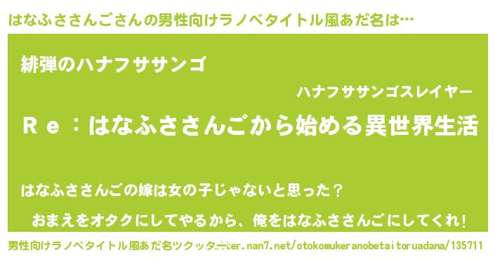 | 意味不明あだ名 | 『自称はなふささんご』 |