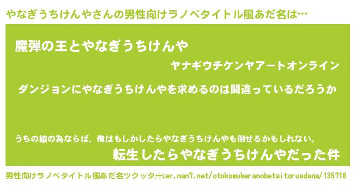 | 胡散臭い通販商品みたいなあだ名 | 『信頼と実績のペンダント…その名も「やなぎうちけんや」』 |