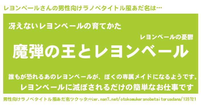 | 女子向けラノベタイトル風あだ名 | 『レヨンベールが死なない童話 林檎のレヨンベールの診療簿』 |