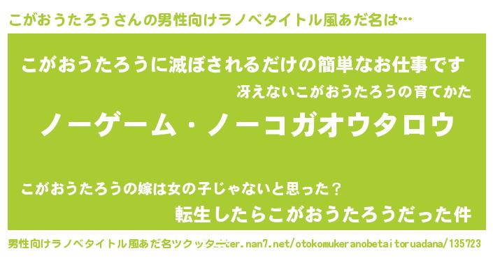 | 伝説のあだ名 | 『救世主となる錬金術士こがおうたろう』 |