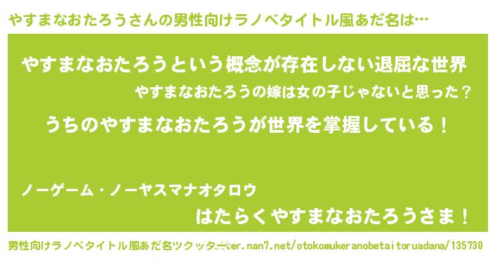 | ヘコむあだ名 | 『やすまなおたろう(笑)』『やすを』 |